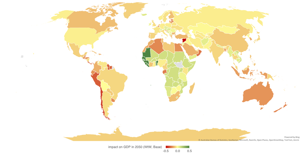 UNCTAD has modelled a range of scenarios and combination of parameters, which cannot easily be summarized. The global average impact on trade and GDP are small, but the relative changes in trade and development between countries are not insignificant.