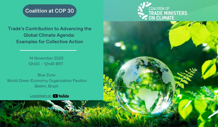 Underlining the need for inclusive international cooperation on the nexus of trade, climate, and sustainable development, the Coalition brings together over 60 trade ministers from a diversity of countries from different regions at varying levels of development, climate vulnerabilities, and trade circumstances.