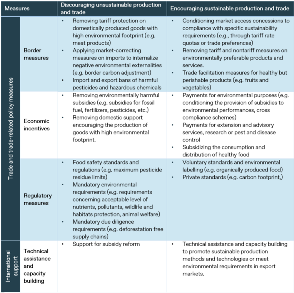 Governments have a range of trade-related policy tools at their disposal to promote more environmentally sustainable agricultural practices or production methods.