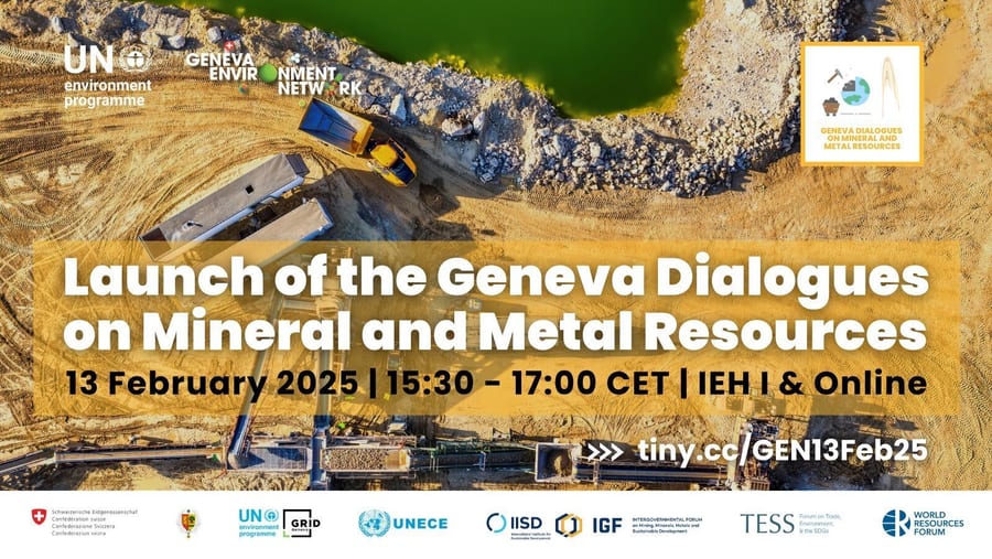 The dialogues are organized by the Geneva Environment Network in partnership with Switzerland, Senegal, UNEP/GRID-Geneva, UNECE, the International Institute for Sustainable Development (IISD), the Intergovernmental Forum on Mining, Minerals, Metals and Sustainable Development (IGF), The Forum on Trade, Environment, & the SDGs (TESS), and the World Resources Forum.