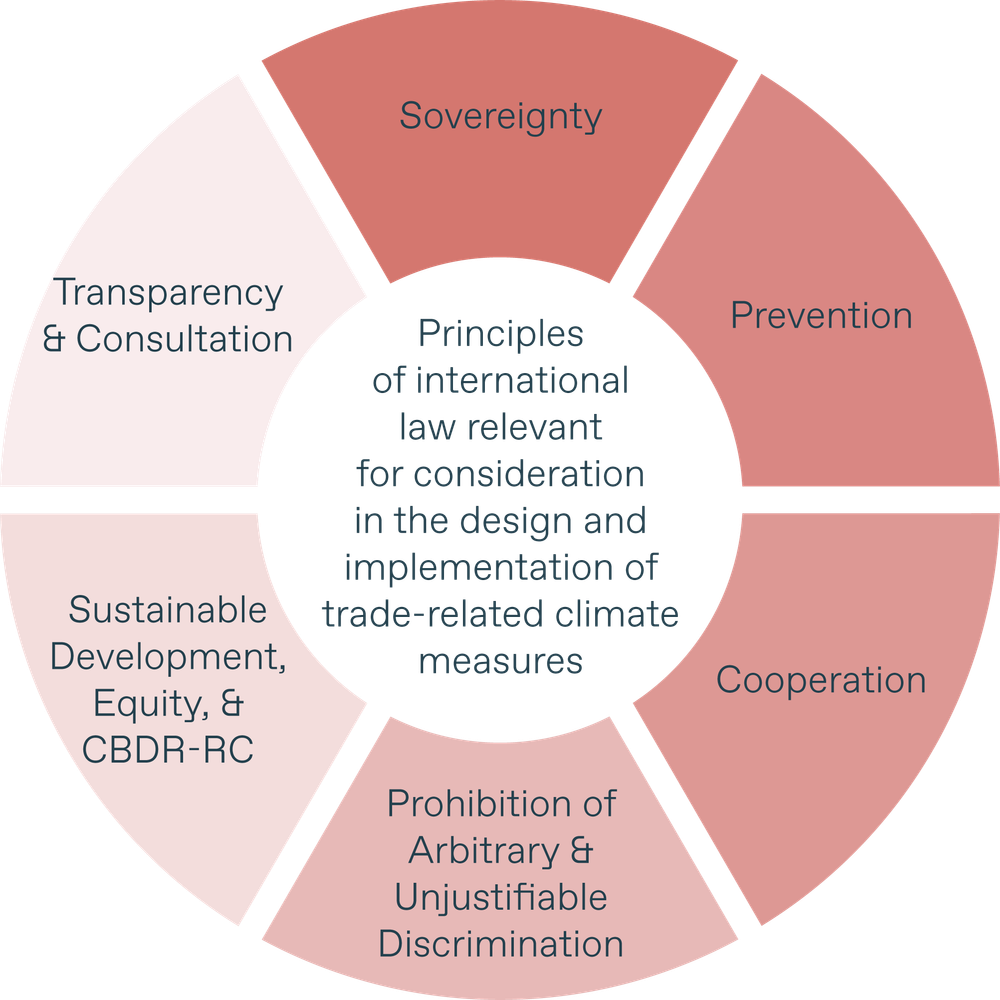 To this end, in the report, the group addresses a set of recognized principles of international law that we deem especially relevant for consideration in the design and implementation of trade-related climate measures and policies. In addition to highlighting the relevance of these principles, our report aims to provide governments with some general guidance, which we hope could be useful in the design and implementation of trade-related climate measures and policies, recognizing that the relevance of principles will depend on the type of measure and context.
