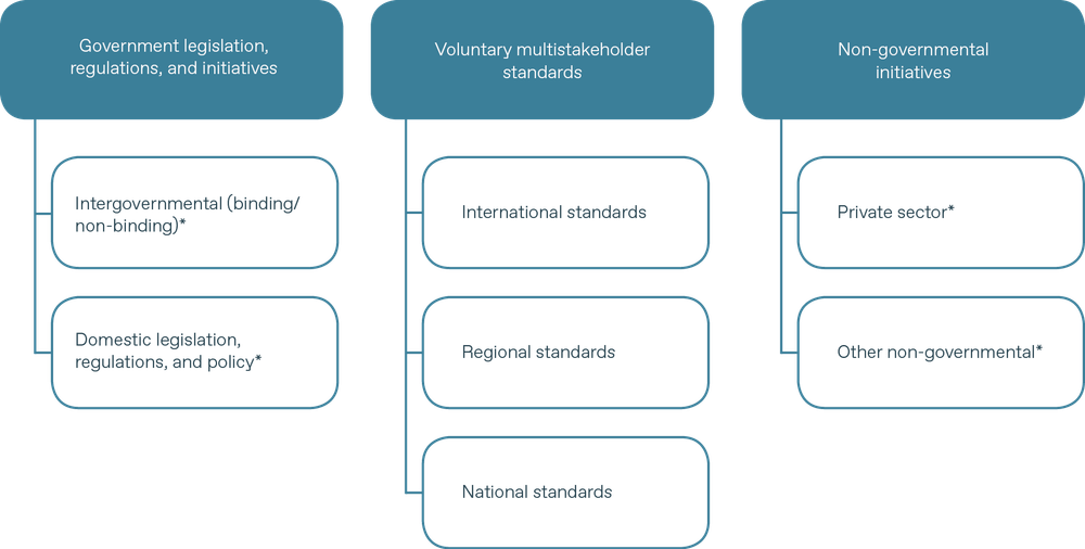 Against that backdrop, the policy paper is intended to inform discussion on the role that international cooperation on standards can play in supporting global efforts to end plastic pollution. It starts with a brief overview of existing standards and standard-setting processes. The paper then reviews and explores the interplay between three categories of instruments that are described by different actors as standards: government legislation, regulations, and initiatives; voluntary multistakeholder standards; and non-governmental initiatives. It provides tables with illustrative examples of each category.