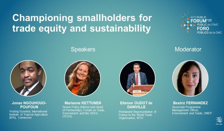 This session provided an opportunity for an open discussion to assess possible options to advance inclusive international cooperation on sustainable agriculture in different venues in a way that effectively contributes to addressing critical sustainability challenges and ensures a broad-based participation of WTO Members.