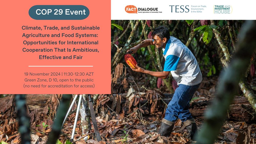 As governments and stakeholders gathered in Baku from 11–22 November for the 2024 UN Climate Change Conference (COP29), TESS advanced its work to promote ambitious and inclusive cooperation on trade, climate, and sustainable development.