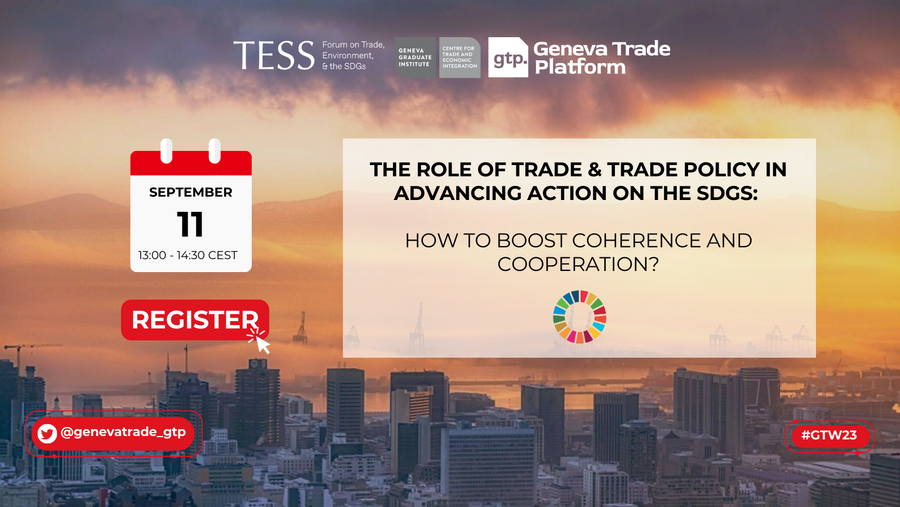 To open Geneva Trade Week 2023, TESS hosted a plenary session to offer perspectives on how trade and trade policies are relevant to efforts to advance implementation of the UN Sustainable Development Goals (SDGs). Geneva Trade Week is hosted annually at the Geneva Graduate Institute alongside the WTO Public Forum.