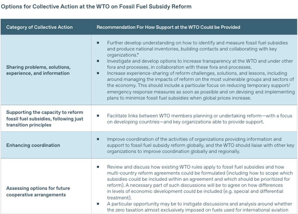 Collective action is essential to driving the urgently needed reduction and elimination of fossil fuel subsidies that hasten the climate crisis. The WTO has a key role to play in this reform.