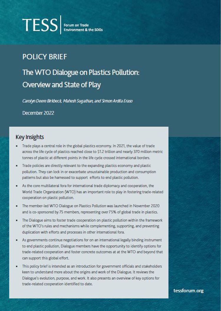 As governments continue negotiations to develop an international legally binding instrument to end plastic pollution, members of the WTO Dialogue on Plastics Pollution have the opportunity to identify options for trade-related cooperation and foster concrete outcomes at the WTO and beyond that can support this global effort.