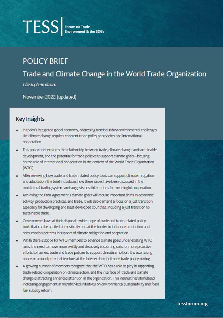 Recommended citation: Bellmann, C. (2022). Trade and climate change in the World Trade Organization. Forum on Trade, Environment, & the SDGs (TESS).