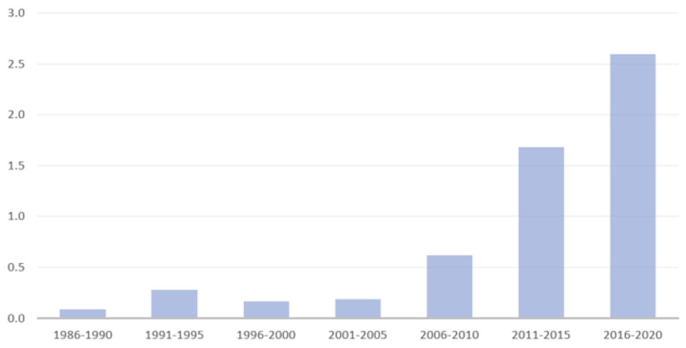 Average Number of Climate-Related Provisions in Preferential Trade Agreements (Brandi et al. 2024)