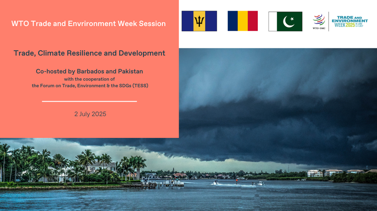 As part of the WTO’s Trade and Environment Week 2025, the Permanent Missions of Barbados, Chad, and Pakistan, with the support of TESS, co-hosted a session on “Trade, Climate Resilience and Development.”
