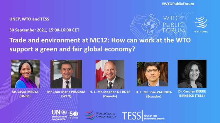 TESS, in collaboration with the World Trade Organization (WTO) and the United Nations Environment Programme (UNEP), held a joint session on “Trade and environment at MC12: How can work at the WTO support a green and fair global economy?”