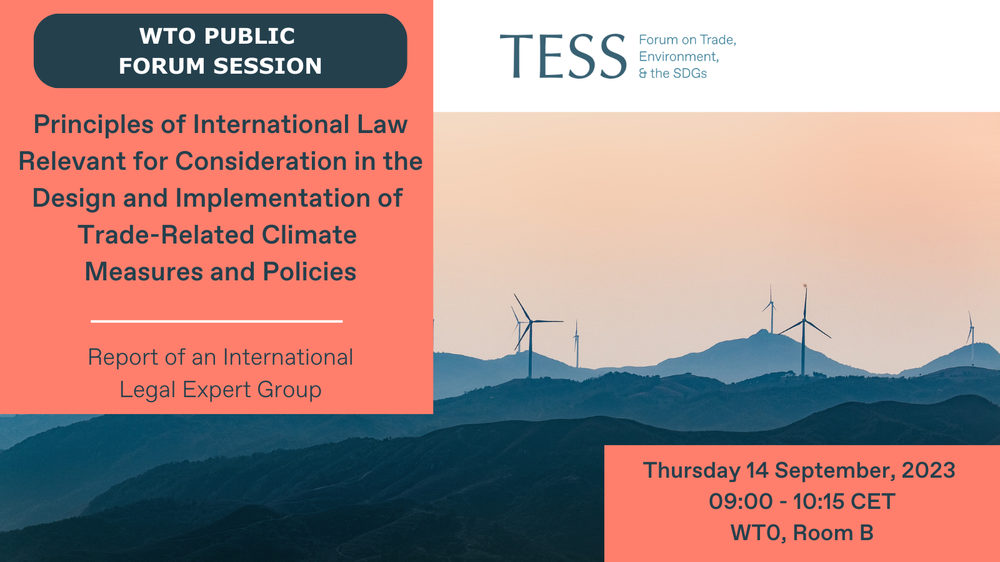 You can view this video of a side event on Principles for consideration in the design and implementation of trade-related climate measures and policies hosted by Colombia in collaboration with TESS at the WTO's 2023 Trade and Environment Week.